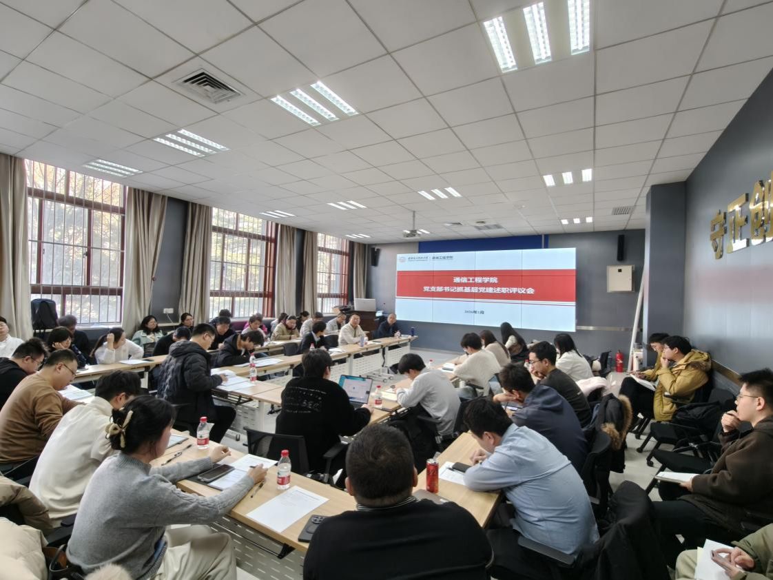 本次党支部书记抓党建述职评议采取书面考核与现场考核相结合的方式进行。ISN第一党支部、空天地一体化综合业务网全国重点实验室高保真信息传输党支部、中英班学生党支部、硕士24级第一党支部等五个党支部书记依次上台作现场述职汇报。大家围绕2025年度党建工作重点,全面梳理了支部在理论学习强化、组织生活规范、党员教育管理、党建与业务融合实践等方面的工作成效,深刻剖析了支部建设中存在的短板不足,并结合支部实际明确了下一步改进思路与工作举措。