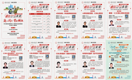 本科课程建设,此次疫情期间,华为云核心网产品线与学院共同主办“通信无处不在,核你一起闯未来”本科生系列讲座,华为光产品线也带着“与光同行,光耀未来”系列报告加入进来,我们携手同行,在同一蓝天下,一起向未来,共同探索新工科教学新模式,挖掘和培养未来智能世界新人才。